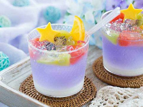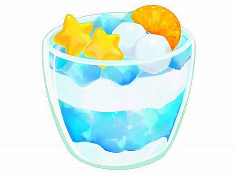 お好きなフルーツを星形に抜き取り、ジュースやゼラチンを加えて冷やし固めたものです。
