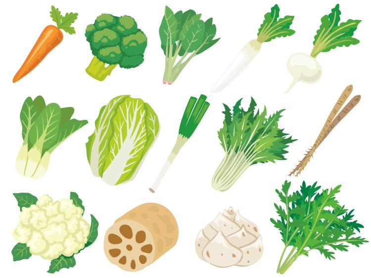 - ⚪ 白い野菜:だいこん・たまねぎ