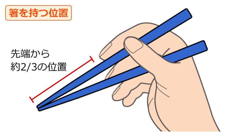 箸を持つ場所は、箸の先端から約2/3の位置