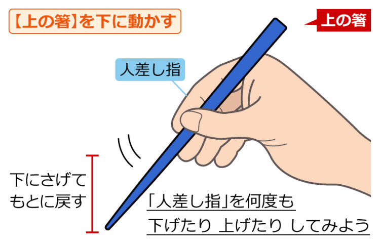 2.上の箸を下に動かしてみよう(人差し指で)