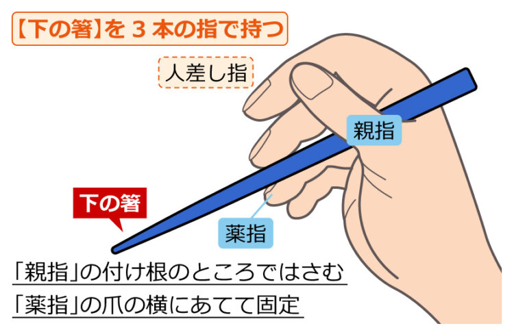※下の箸は、固定させて動かさないようにします。