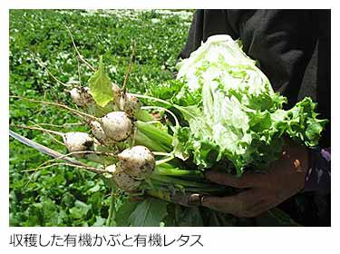 富士山・南アルプス・八ヶ岳が一望できる山梨県北杜市明野町。日本一日照時間の長いこの高地で、主に大根、小かぶ、白菜、キャベツ、チンゲン菜、ほうれん草、レタス、サニーレタス、リーフレタス、トマト、ズッキーニ、インゲン、南瓜などを有機栽培でつくってらっしゃいます。