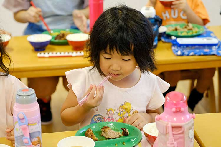 食べたことがない料理や味付け、苦手なものも幼稚園の友達と一緒に食べることで、より一層美味しく感じたり、苦手なものも克服できるのでは、と考えています。