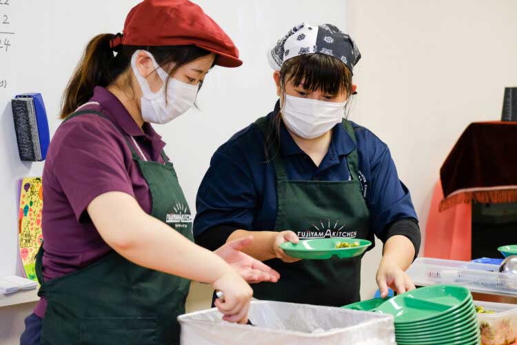 よそい方も、多いものと少ないのと用意して、そこから自分で、「これだったら自分が食べられるかな」と自分で決められるようにしています。準備している量でも多いと感じる時は「少な目でお願いします」という子もいます。