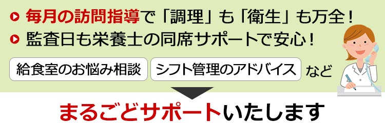 さらに、調理指導や衛生指導・監査対応で万全の給食運営をお手伝いする